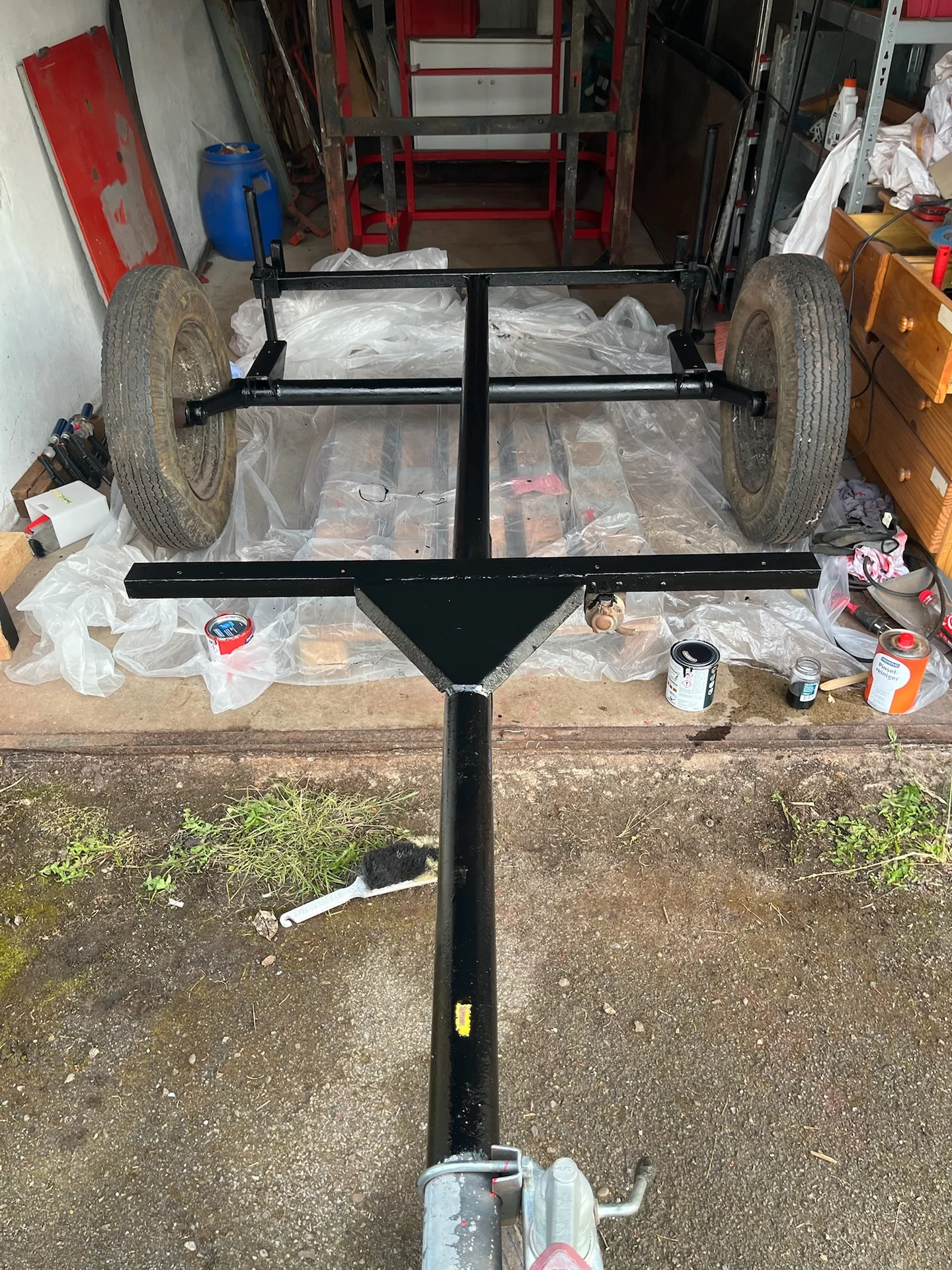 Nun konnte also endlich neue Farbe auf das Gestell und die Einzelteile. Auch einen neuen, zusätzlichen Aluboden haben wir dem Anhänger verpasst, nun da, er schon schon völlig zerlegt war. Zwischendurch kam uns mehrfach die Frage, ob das Projekt eine gute Idee war und vor allem, ob wir das Puzzle aus des Anhängers jemals wieder zusammengesetzt bekommen würden.