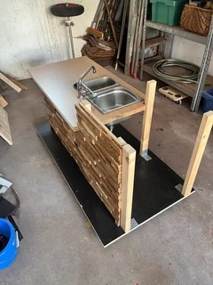 In der Zwischenzeit haben wir aber auch schon fleißig am Innenausbau / Thekenauszug gearbeitet und getüftelt. Auch dieser nahm erste Züge an man konnte schon bald erkennen, was grob daraus werden sollte.